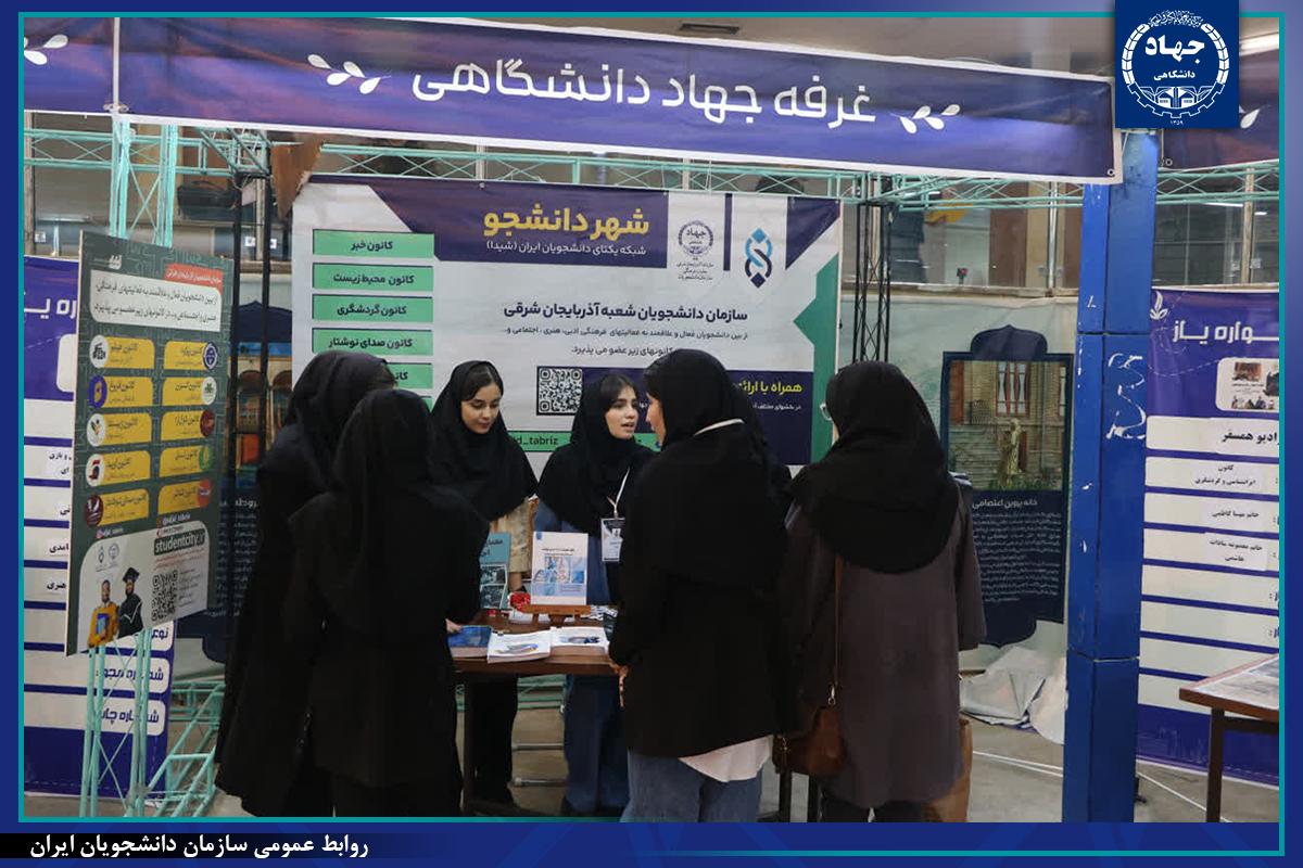 غرفهی سازمان جهاددانشگاهی آذربایجان شرقی در نمایشگاه ویژه دانشجویان جدیدالورود دانشگاه تبریز با محوریت معرفی «شهر دانشجو، دورههای آموزشی و برنامههای فرهنگی» برپا شده تا دانشجویان با خدمات و ظرفیتهای این سازمان آشنا شوند.