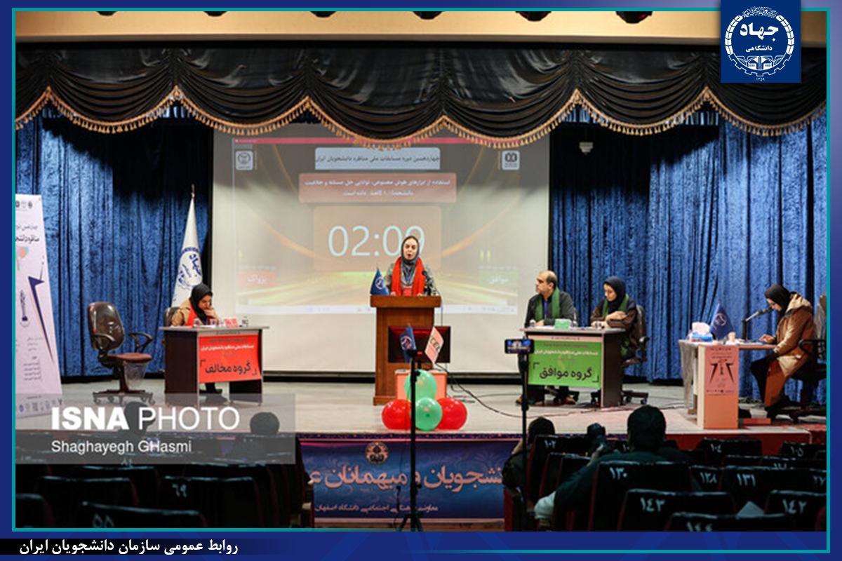 به گزارش روابط عمومی سازمان دانشجویان ایران، مرحله استانی چهاردهمین دوره مسابقات ملی مناظرههای دانشجویان ایران استان اصفهان توسط سازمان دانشجویان واحد اصفهان برگزار شد.در این مناظرات دوازده گروه به رقابت با یکدیگر پرداختند و شش گزاره مورد بررسی قرار گرفت.