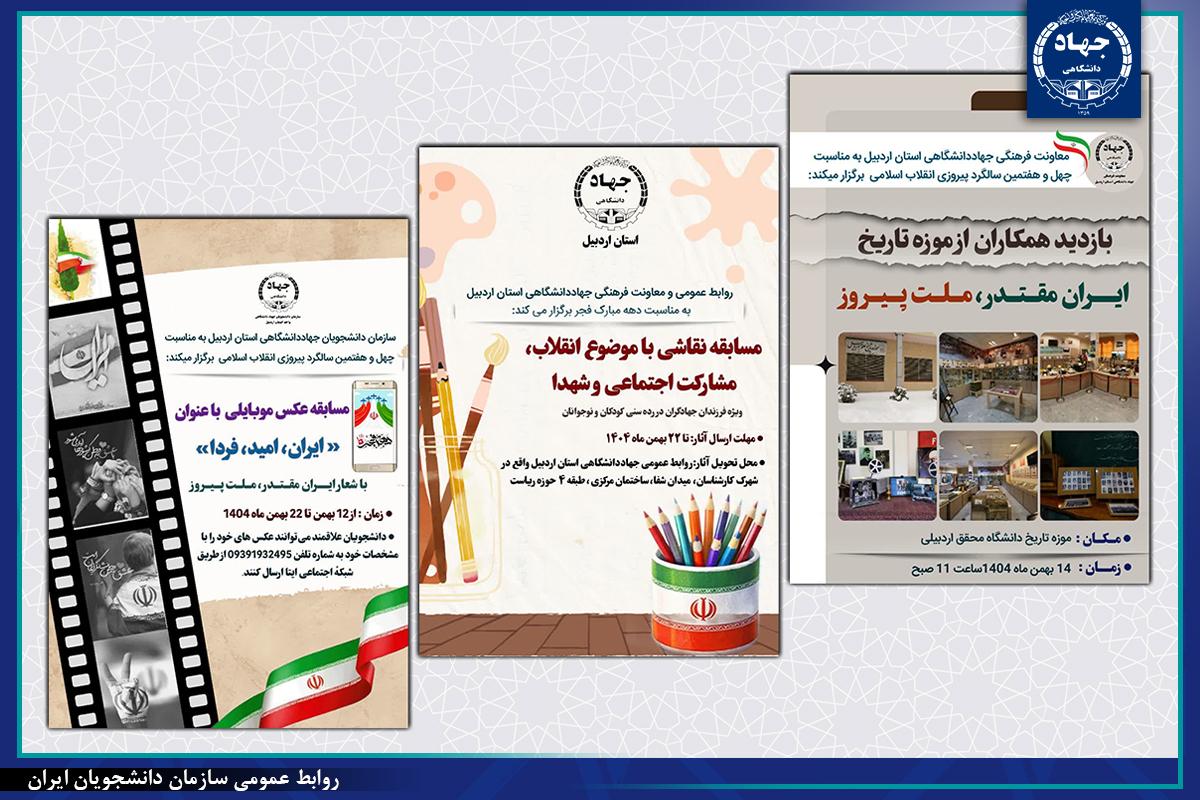 مجموعه برنامههای فرهنگی جهاددانشگاهی استان اردبیل به مناسبت دهه فجر و سالگرد پیروزی انقلاب اسلامی برگزار می شود